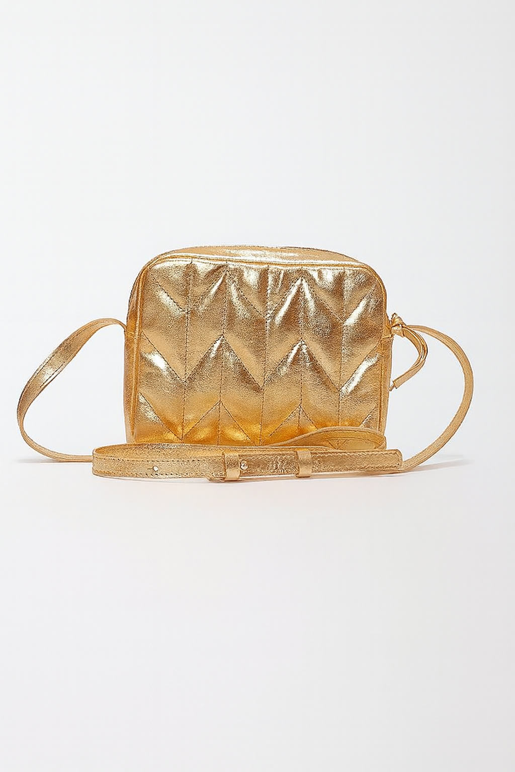 Material: Couro legítimo com acabamento metalizado e efeito matelassê
